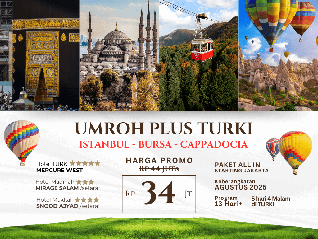 - Perlengkapan : Koper kabin, koper bagasi, tas paspor, kain ihram/mukena, sandal, buku manasik, kain seragam, syal, & sabuk