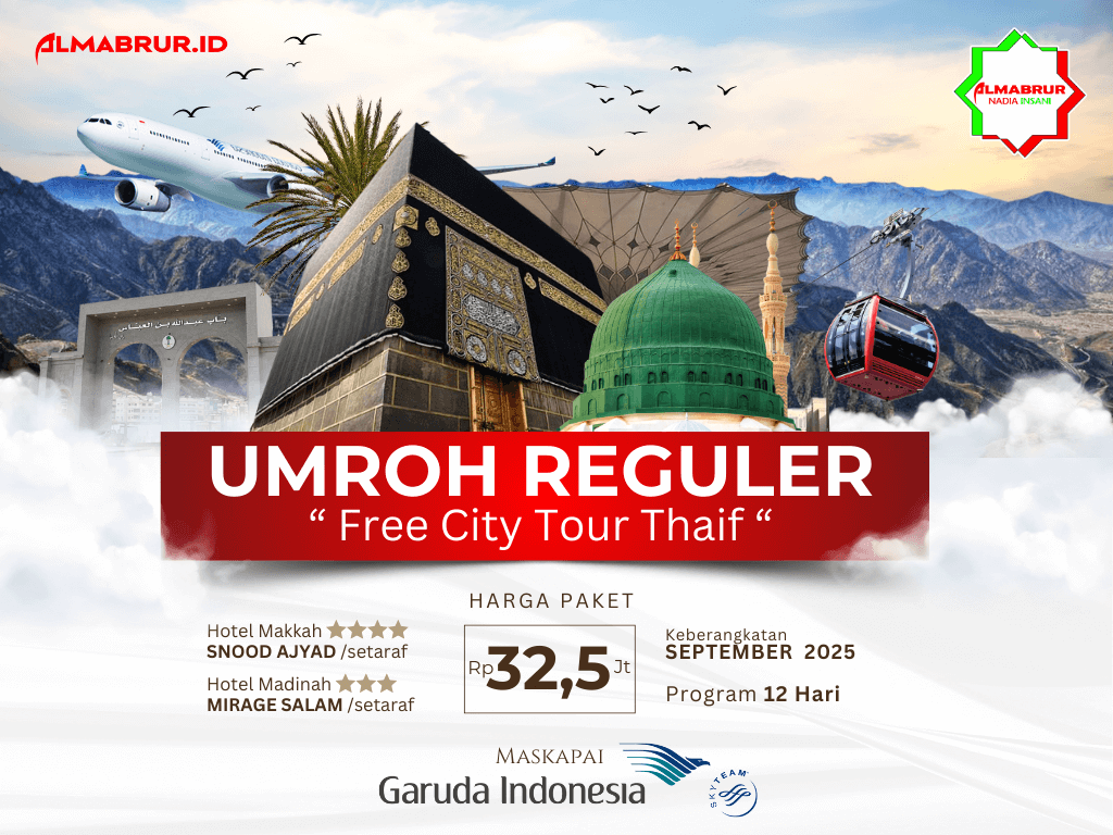 - Perlengkapan : Koper kabin, koper bagasi, tas paspor, kain ihram/mukena, sandal, buku manasik, kain seragam, syal, & sabuk