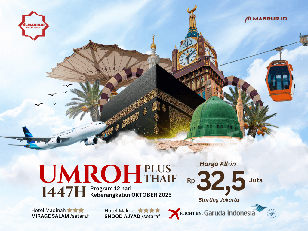 - Perlengkapan : Koper kabin, koper bagasi, tas paspor, kain ihram/mukena, sandal, buku manasik, kain seragam, syal, & sabuk